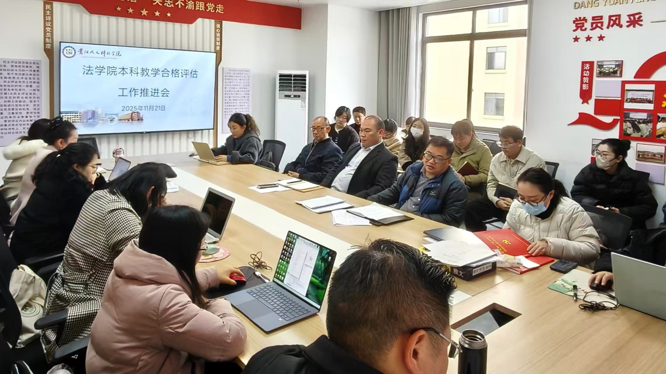11月21日,新葡萄法学院在大学城校区召开本科教学合格评估工作推进会。法学院院长杨武松、党委书记张福高、党委副书记杨晶晶以及全体教师参加会议。会议围绕教学评估准备、教学质量改进、实践教学安排及师资队伍建设等核心议题进行了深入讨论和系统部署。