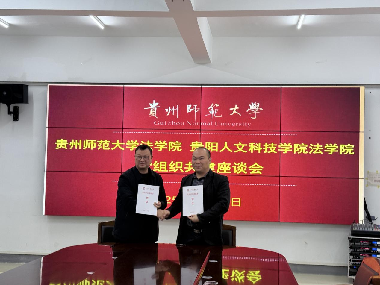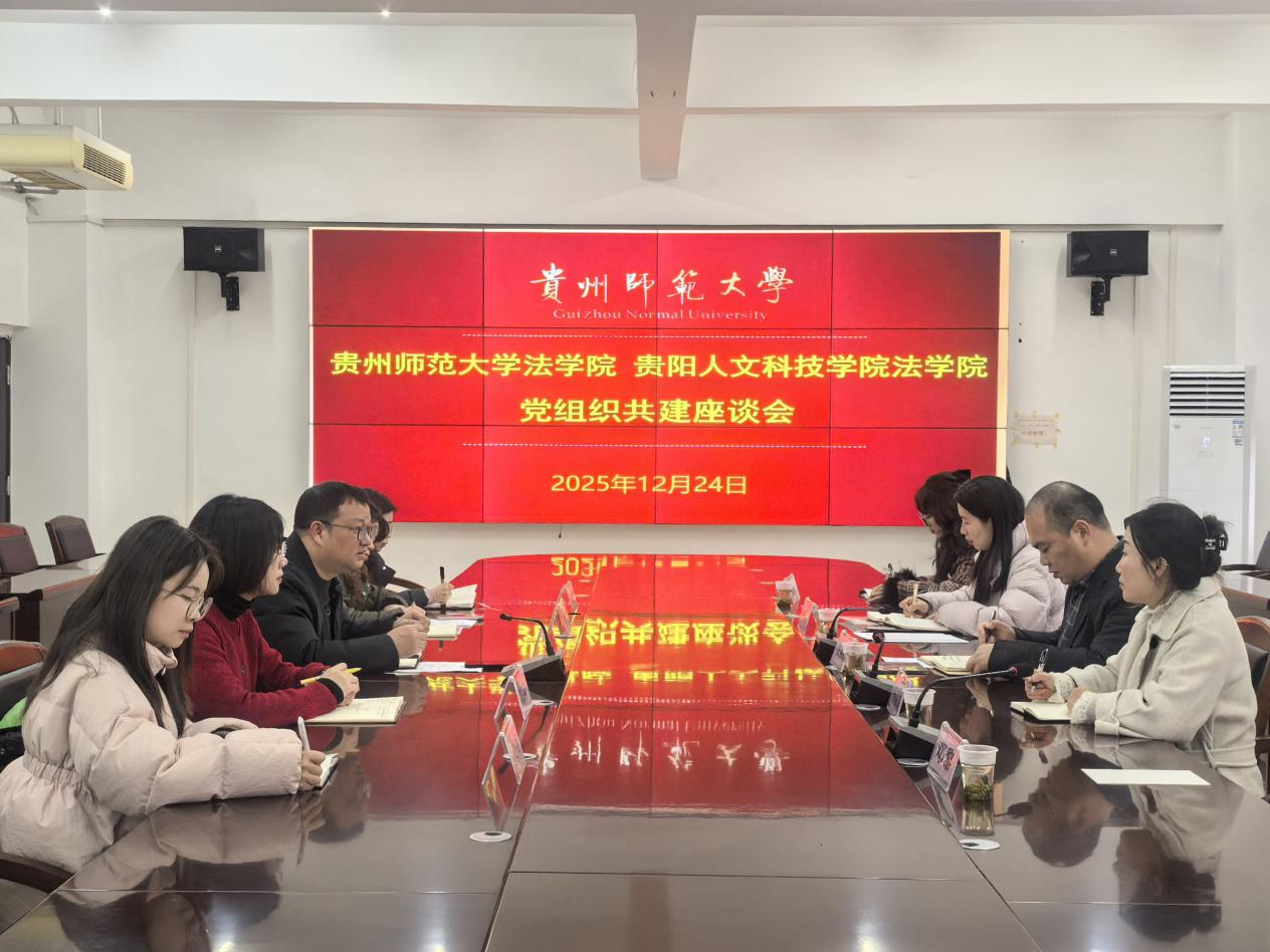 12月24日上午,新葡萄AMG官方网站法学院与贵州师范大学法学院党建共建联建座谈会在贵州师范大学法学院会议室举行。两校法学院领导班子成员和党务工作者齐聚,共同探讨党建与业务深度融合的创新路径,并签署了党建共建协议。