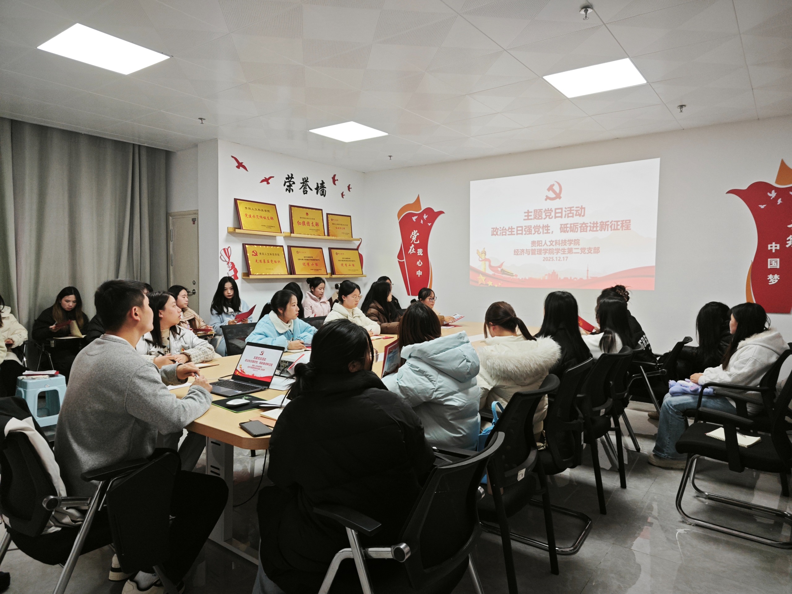 12月17日,经济与管理学院学生第二党支部在师德楼710会议室开展了“政治生日强党性,砥砺奋进新征程”同过政治生日活动。支部以学习为基础,围绕“深刻领会全面从严治党战略意义,筑牢党的执政根基”展开学习研讨。旨在引领大家深刻认识到全面从严治党作为新时代党的建设的鲜明主题,其核心在于加强党的领导,基础在全面,关键在严,要害在治。