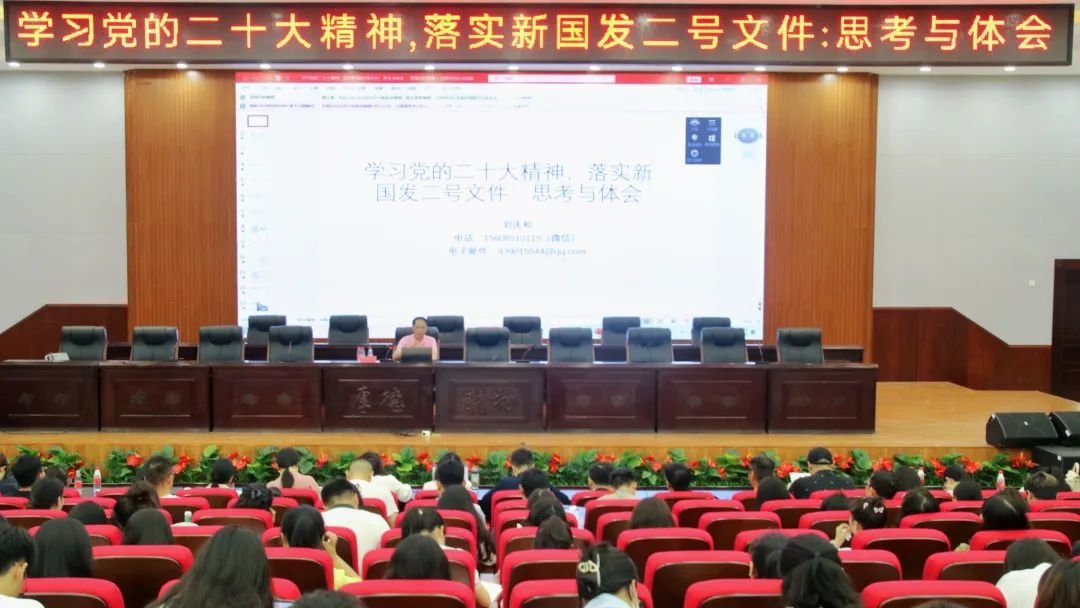 2023年6月16日下午,民建中央经济委员会副主任、民建贵州省委副主委、贵州省社会科学院研究员、省管专家刘庆和应邀为新葡萄师生作“学习党的二十大精神,落实新国发二号文件:思考与体会”专题讲座。讲座由学校党委副书记马帅主持。
