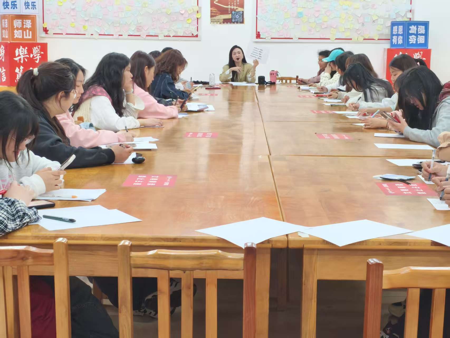4月24日下午3:00—5:00, 新葡萄图书馆联合图书馆协会开展了“《别再转发锦鲤了!大学生的玄学生存法则,让你越算越清醒》”第九期“真人图书馆”活动。本次活动嘉宾邀请了周玉洁老师作为 “真人图书”,与大学生们展开面对面交流,共同剖析 “玄学热” 背后的深层原因,助力大学生在迷茫中找到方向,实现自我成长 。活动旨在深入解读“玄学”在大学生群体中盛行的成因,分析其背后的心理需求、社会压力与文化影响,帮助学生认识到“玄学”行为是压力环境下寻求心理慰藉与掌控感的表现,而非解决现实问题的根本途径;通过专业视角与多元互动,引导学生正确看待“玄学”与科学、理性思维的关系,避免盲目迷信或过度依赖“玄学”决策,树立积极向上的价值观与生活态度,以理性、务实的方式应对学习与生活中的挑战。