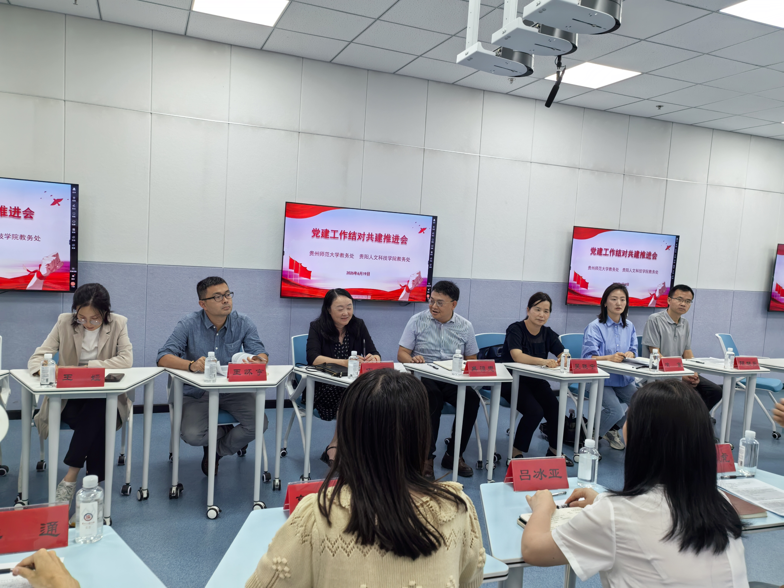 6月19日,贵州师范大学教务处与新葡萄AMG官方网站教务处党建工作结对共建推进会在新葡萄师德楼201智慧教室召开,新葡萄AMG官方网站教务处处长李纯虎主持会议,对贵州师范大学教务处冉源懋处长、支敏处长一行到访表示热烈欢迎。此次会议旨在通过党建引领深化两校教学管理、师资培训、资源整合等领域的合作,助力新葡萄AMG官方网站顺利通过合格评估,并推动双方教育教学质量协同提升。