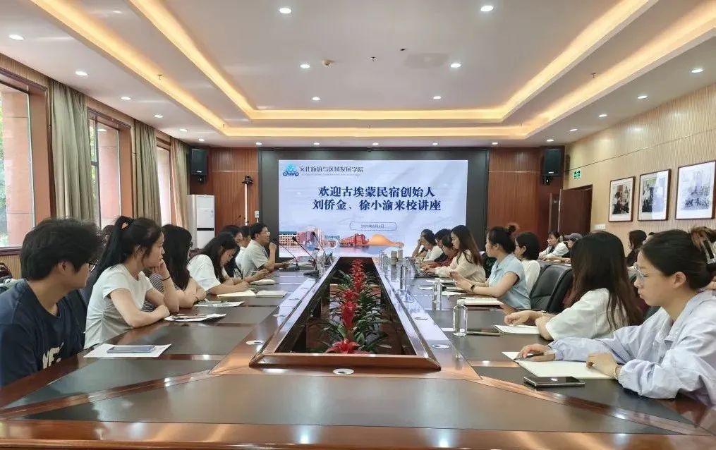 为充分发挥学校办学特色与专业优势,强化学科与实践融合,推动微专业民宿经营管理人才培养,2025年6月6日,我院邀请古埃蒙民宿创始人刘侨金和徐小渝作为主讲嘉宾,于大学城行政楼 201 室与师生共同开启了一场关于民宿经营与管理的智慧之旅。