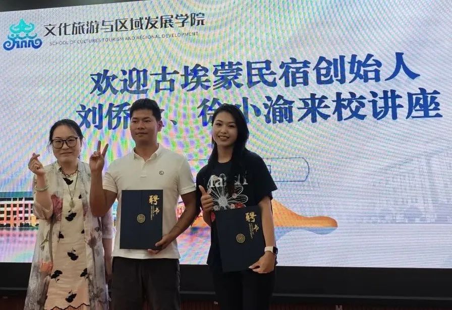 学院副院长对讲座进行总结,她鼓励在场同学勇敢追逐梦想,无论是创业还是学习,都要坚守初心,勇于探索,善于总结,不断奋进。此次行业导师分享讲座,不仅让大家了解了古埃蒙民宿的成功经验,更为准创业者注入了强心剂。相信未来会有更多优秀青年投身民宿行业,为该领域注入新的活力与创意。讲座结束后,于院长向刘侨金、徐小渝两位创始人颁发我院行业导师聘请证书,期望以此推动校企深度融合发展。