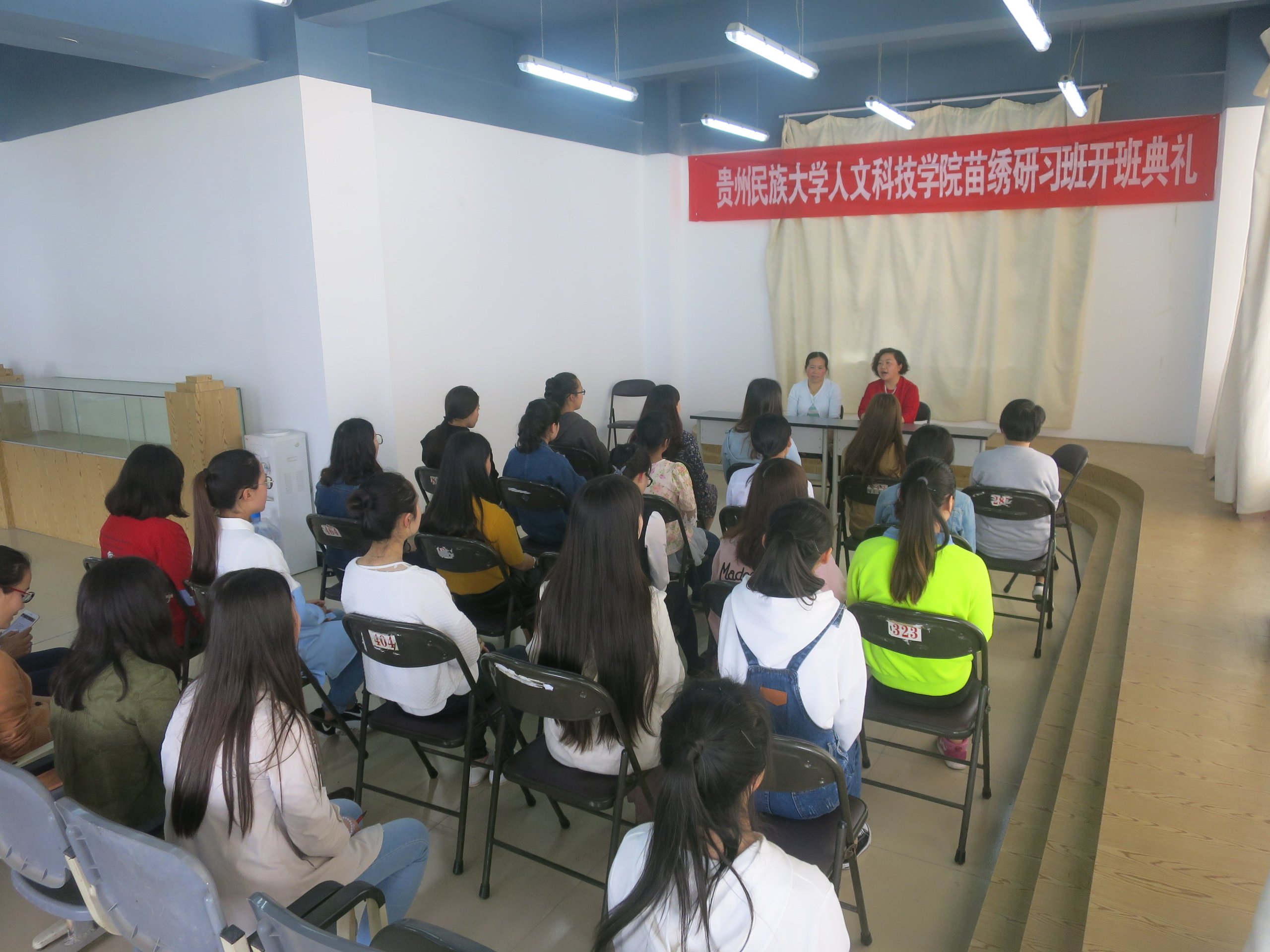 2017年4月8日13:00点,贵州民族大学新葡萄科技学院第三期苗绣初级研习班开班,本期初级班的18位学员不仅涵盖了本院管理学部、文学部、教艺学部的师生,更集聚了来自贵州人民出版社、贵州大学、贵州师范大学、安顺学院等多家单位的领导和师生。