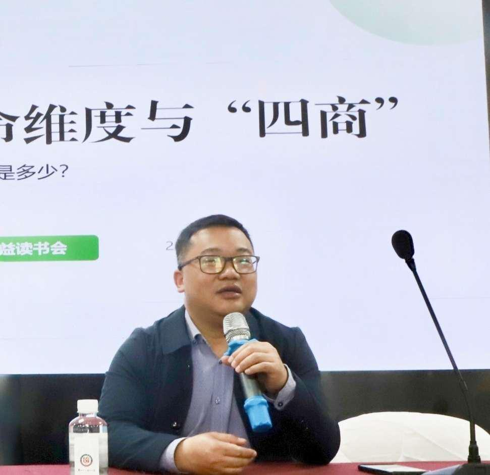 讲座最后,杨武松院长作总结讲话,他首先对卜贵荣主任及愿果公益读书会的志愿者们的到来表示热烈欢迎,接着为同学们分享在本次讲座中的收获,并表示希望同学们能够在未来将所学运用到生活中,不断提升自己的四商,以更加积极的姿态面对未来的挑战,实现自己的人生价值。