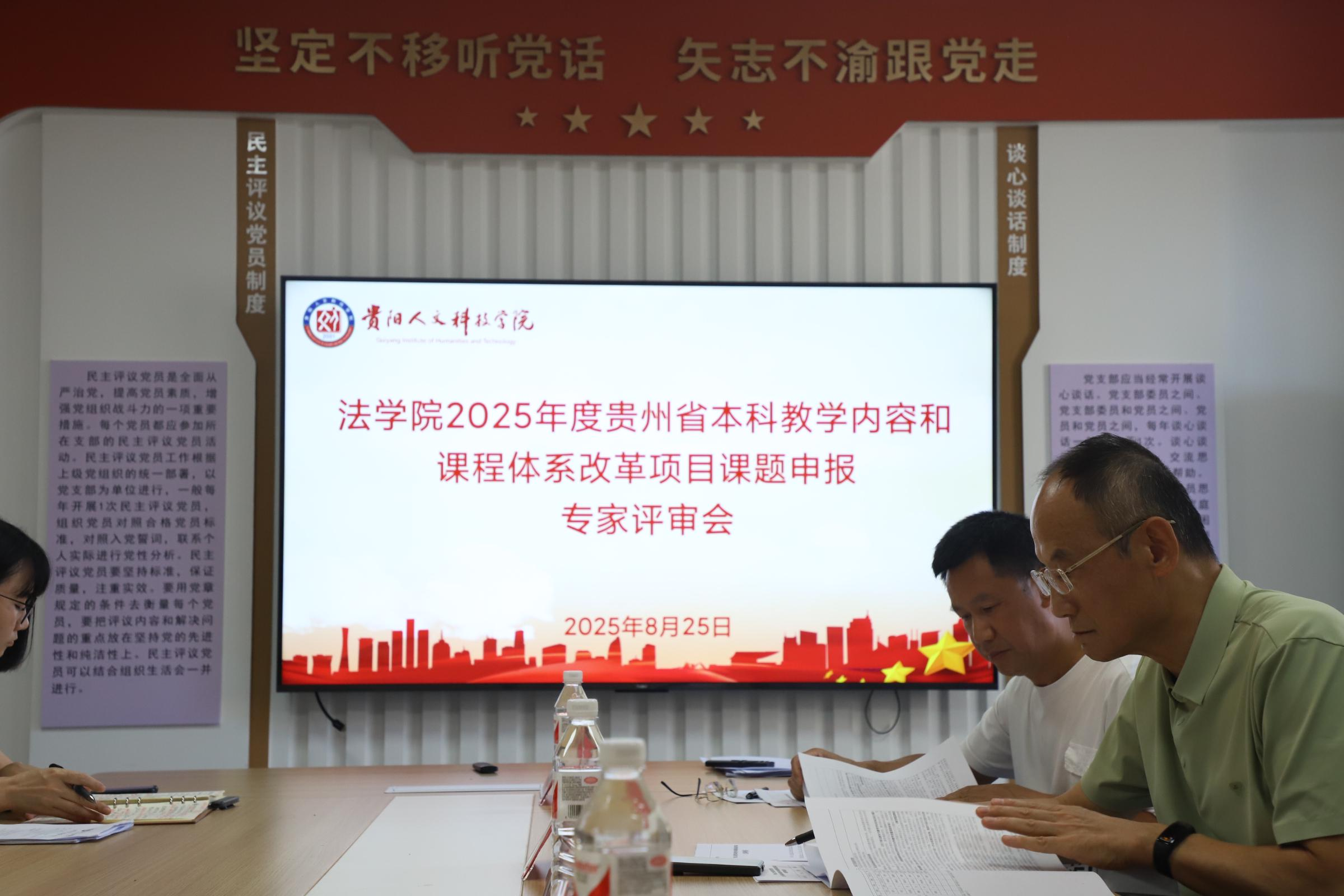 为深化教育教学改革、提升教学质量,扎实推进法学教改课题研究与实践,新葡萄AMG官方网站法学院于8月25日下午14:00,在大学城校区师德楼610会议室举办“2025 年度贵州省本科教学内容和课程体系改革项目课题申报评审会”。会议由法学院副院长倪亭主持,特邀刘晓海教授、余贵忠教授、廖志刚教授、汤跃教授担任评审专家,3位课题负责人参会。