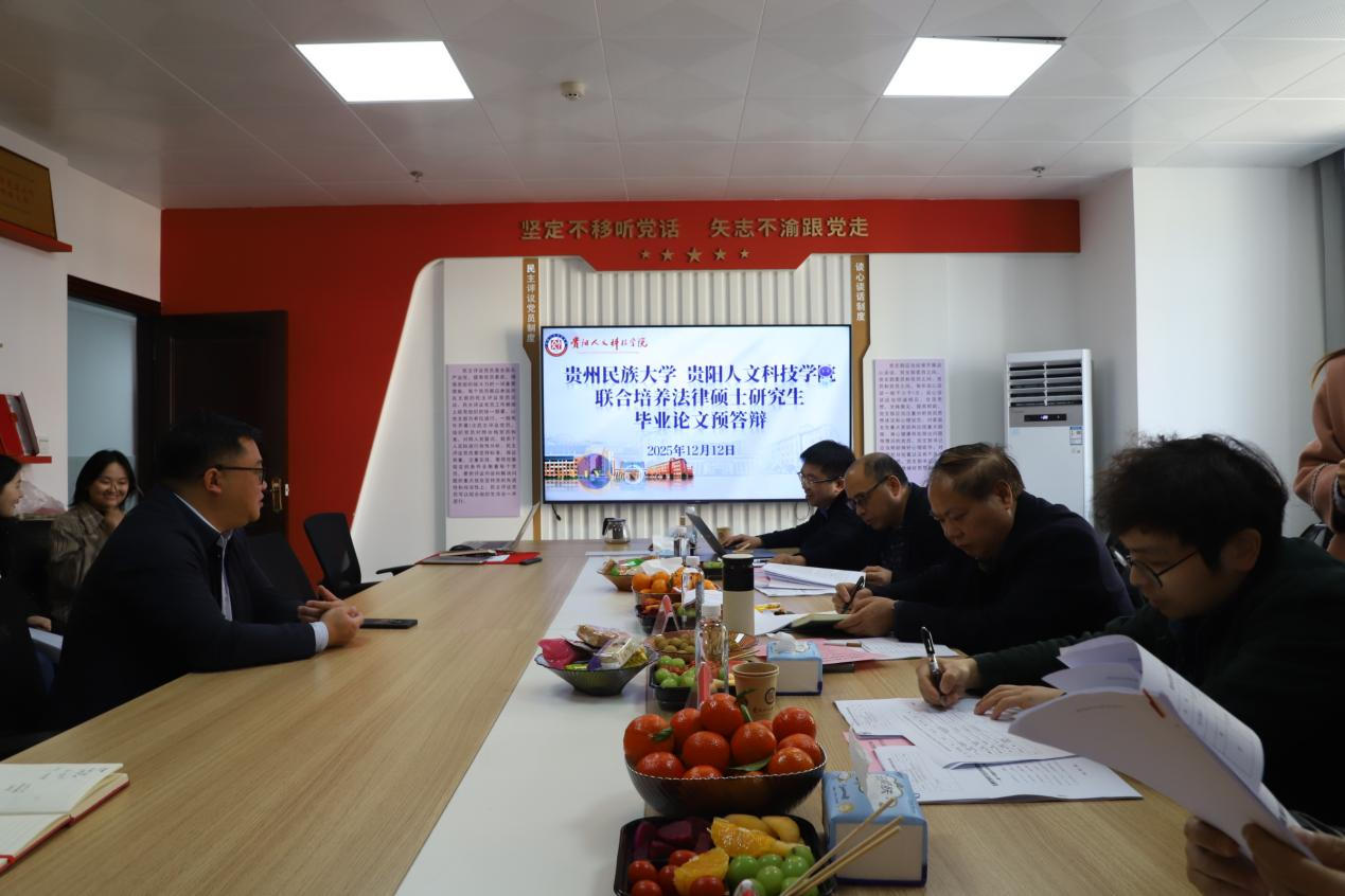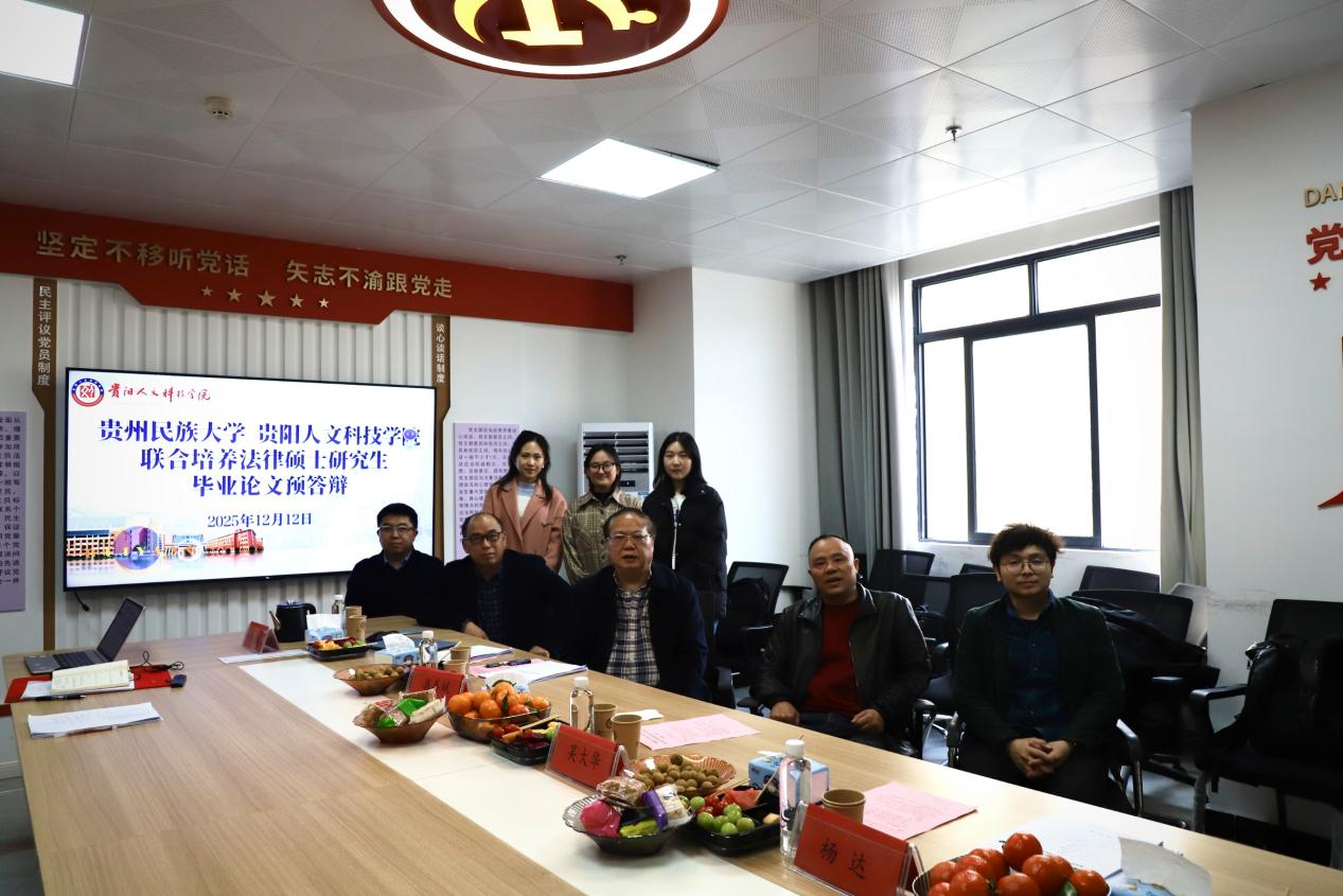 12月12日下午,贵州民族大学与新葡萄AMG官方网站联合培养的2023级法律硕士研究生学位论文预答辩,在新葡萄AMG官方网站大学城校区师德楼610会议室举行。本次预答辩旨在严格把关学位论文质量,帮助研究生进一步完善论文,为后续正式答辩做好准备。