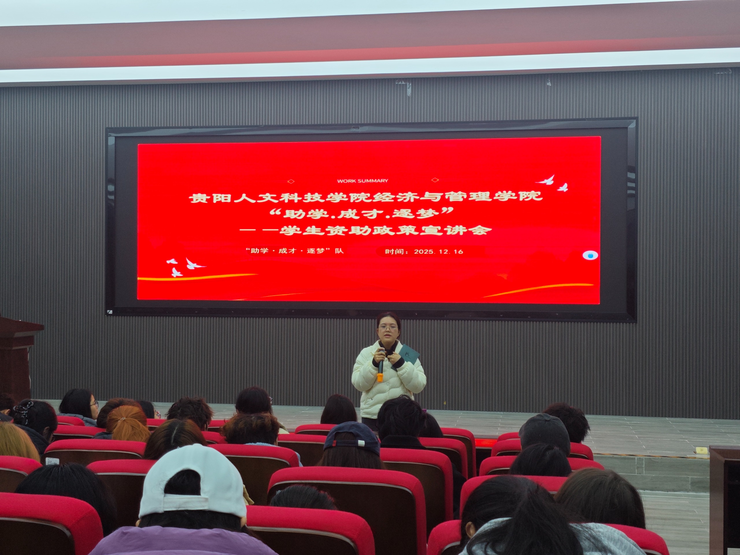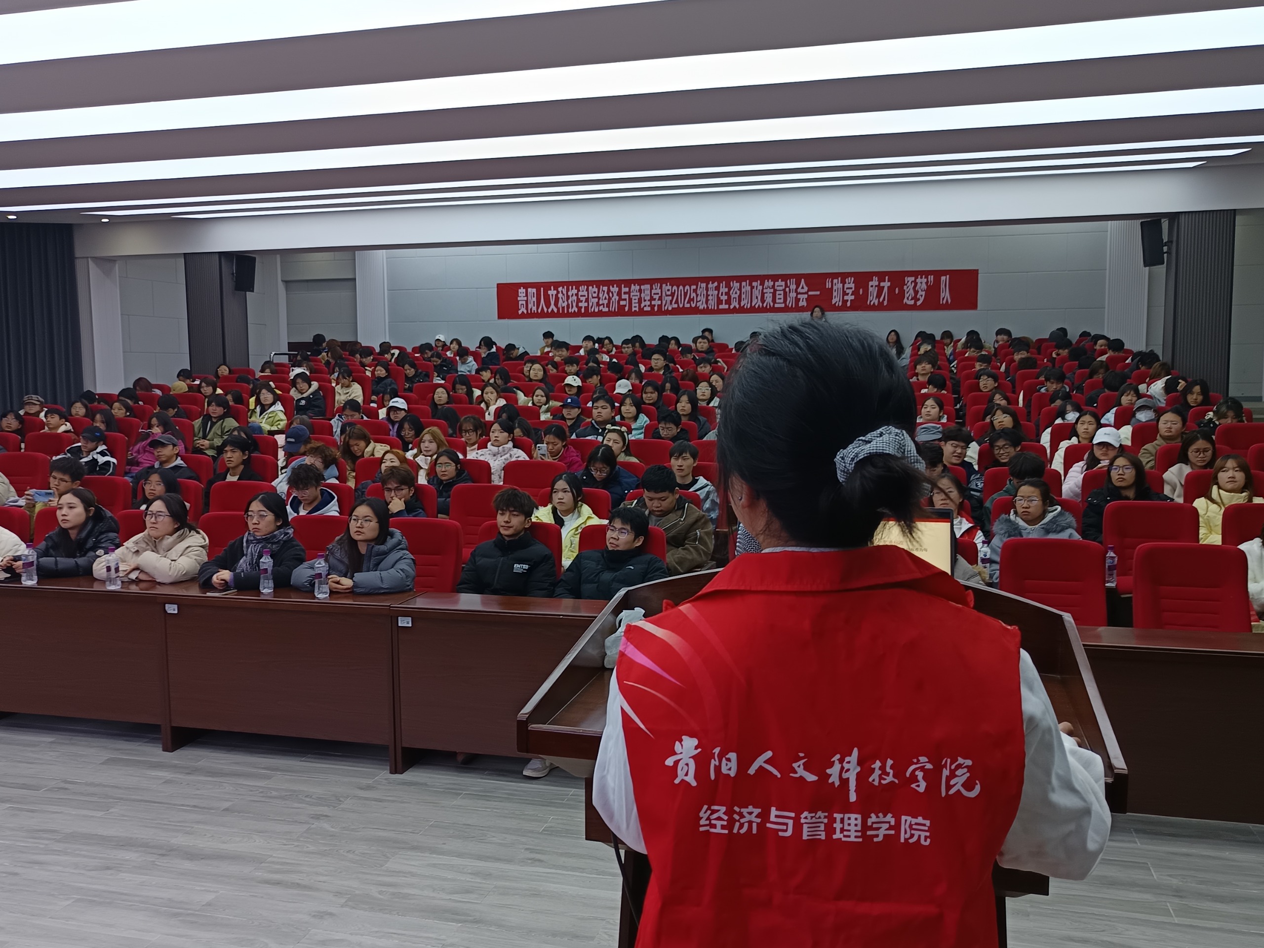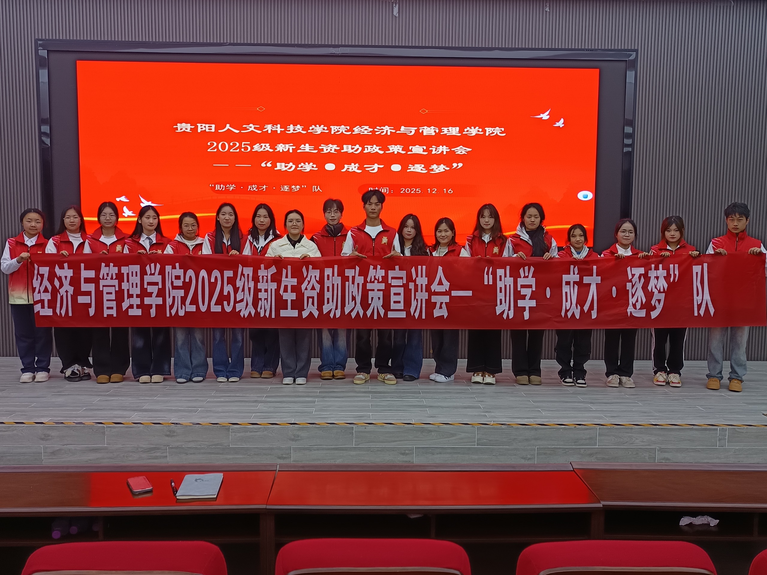为帮助2025级新生全面了解学校各类奖助政策,提升学业规划能力,精准对接个人成长需求,12月16日,经济与管理学院“助学·成才·逐梦”队在花溪校区成功举办2025级新生“奖-助-综-荣誉”政策宣讲会。宣讲会采用分组主讲的形式,围绕学生素质综合测评、荣誉称号评选、奖助学金政策、资助体系解读及材料填报规范展开细致讲解,整场活动互动热烈,答疑解惑直击要点,收获同学们的一致好评!