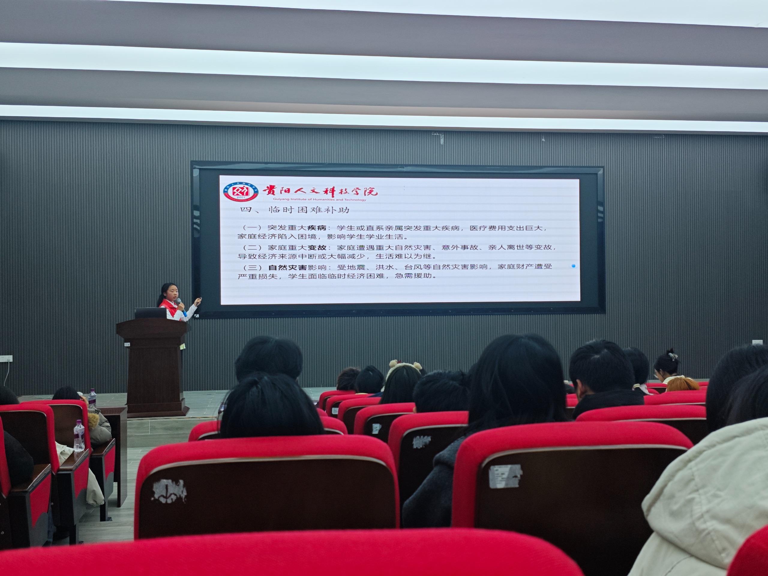 学生资助政策体系由助学贷款、精准扶贫补助、家庭贫困认定、临时困难补助、退役士兵助学金、勤工助学等六大板块构成。宣讲员详细说明了各项政策的申请条件、办理流程、资助标准与发放方式,并结合实际案例进行解读,让政策内容更贴近学生需求。