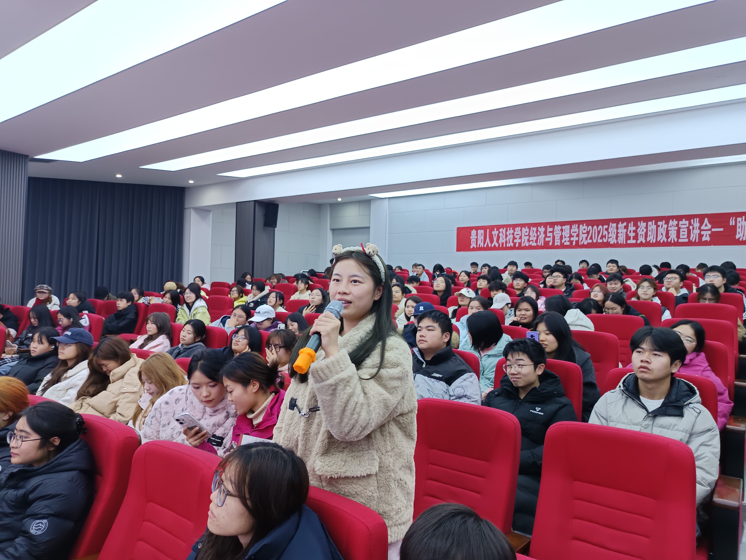 互动答疑环节中,同学们围绕奖学金评选细则、综测加分疑问、困难认定材料准备等具体问题踊跃提问。宣讲员逐一耐心解答,并为积极参与互动的同学送上精美礼品,现场气氛活跃热烈。