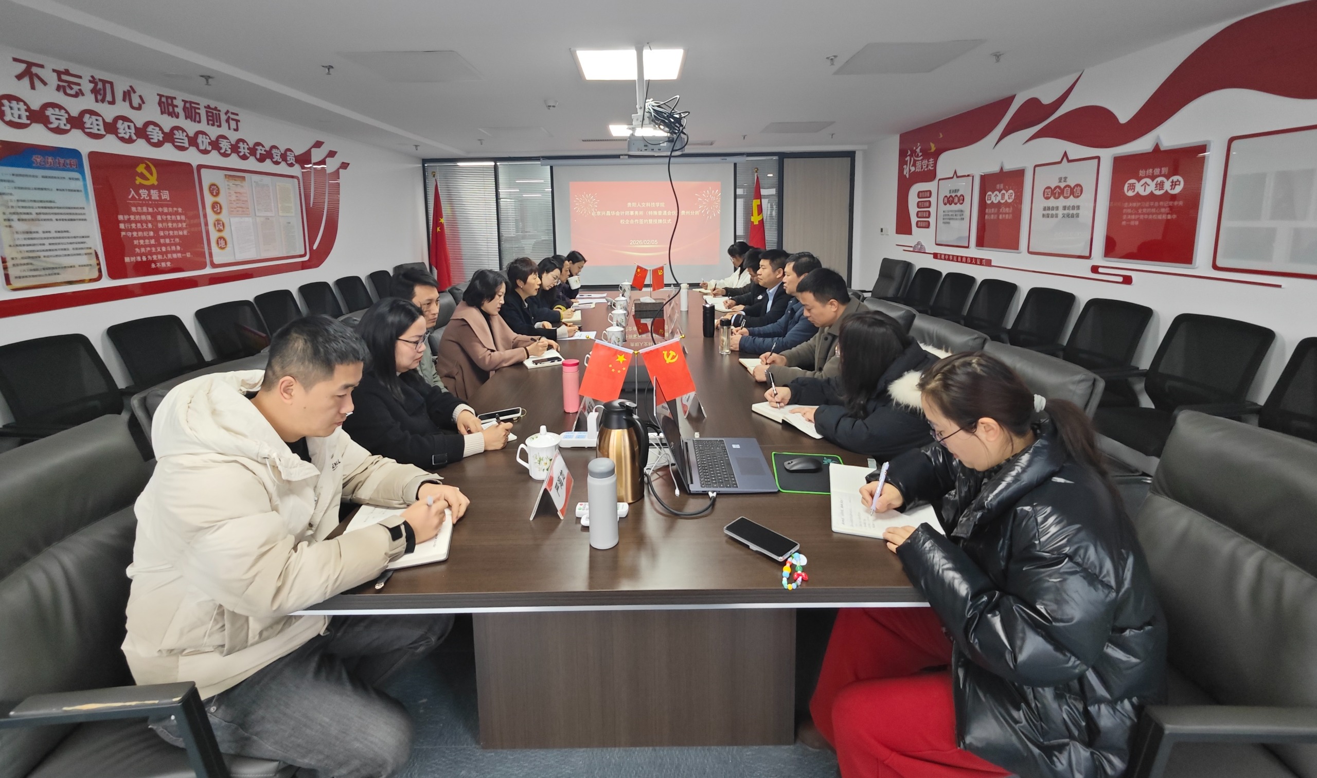 为深入贯彻落实关于高校毕业生就业工作的决策部署,拓展优质就业岗位,深化校企协同育人,2月5日上午,学院党委书记田丹、副院长陈福娣、党委副书记李爽率队,携财务管理教研室教师及就业联络员一行,前往北京兴昌华会计师事务所(特殊普通合伙)贵州分所进行访企拓岗专项交流。双方就人才供需对接、实习实训基地建设、产学研合作等议题进行了深入探讨,并成功签署了实习实训就业合作协议。