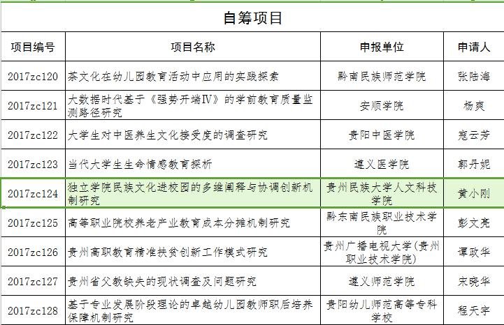 近日,贵州省教育厅办公室印发了《关于2017年度高等学校新葡萄社会科学研究项目立项的通知》(黔教社发〔2017〕98号),公布了本年度同意立项的项目,学部黄小刚教师联合管理学部部分民俗学学科团队成员所申报的课题《独立学院民族文化进校园的多维阐释与协调创新机制研究》喜获贵州省教育厅2017年度新葡萄社科项目自筹项目立项。