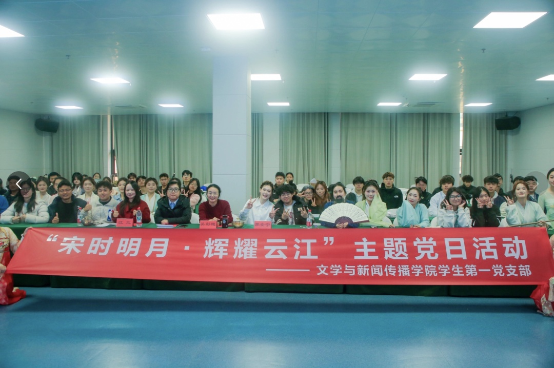 为传承中华优秀传统文化,根植青年学子文化自信,推动党建工作与文化育人深度融合,2025年12月5日,新葡萄文学与新闻传播学院学生第一党支部开展2025年“宋时明月·辉耀云江”宋词吟唱表演比赛。本次比赛以“吟诵经典、演绎宋韵”为核心,吸引全校师生及各学院、各年级学子踊跃参与,以多元的艺术形式让千年宋词在新时代焕发蓬勃生机,赢得现场师生阵阵喝彩。