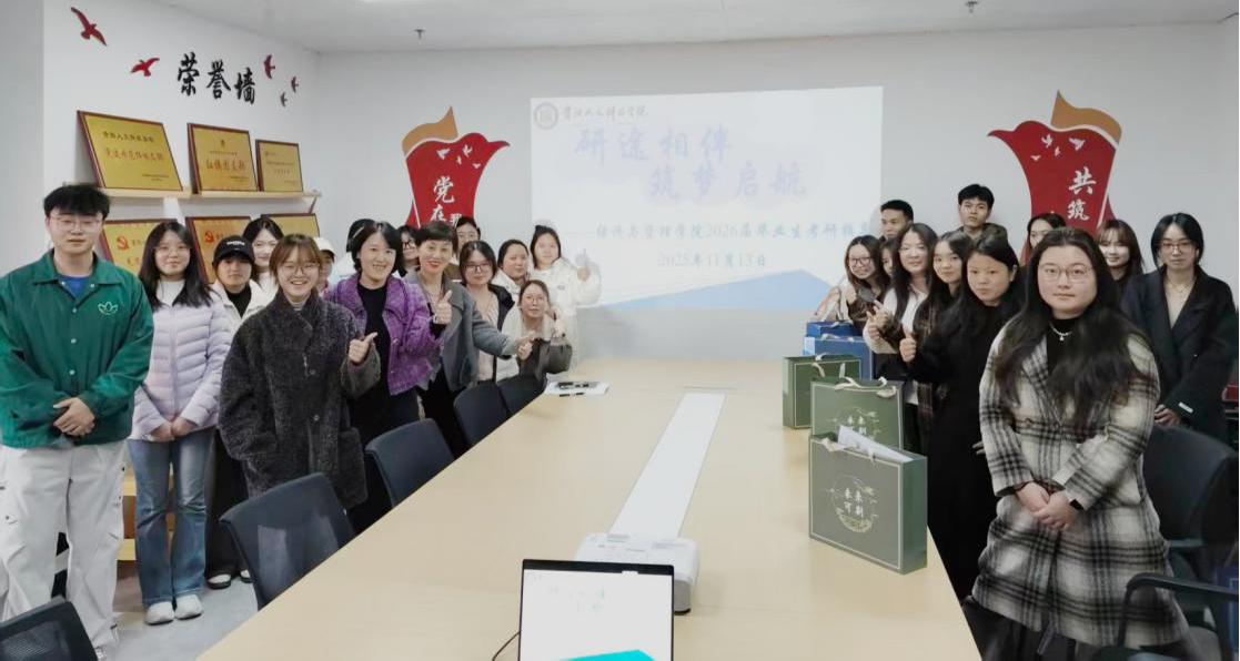 11月13日,我院于师德楼710会议室举行“研途相伴,筑梦启航”为主题的毕业生考研指导座谈会。旨在帮助2026届考研学生明确备考方向、调整心态、提升复习效率。学院党委书记田丹、学院董院长、副院长陈福娣出席会议,三位成功“上岸”的硕士研究生受邀进行经验分享。