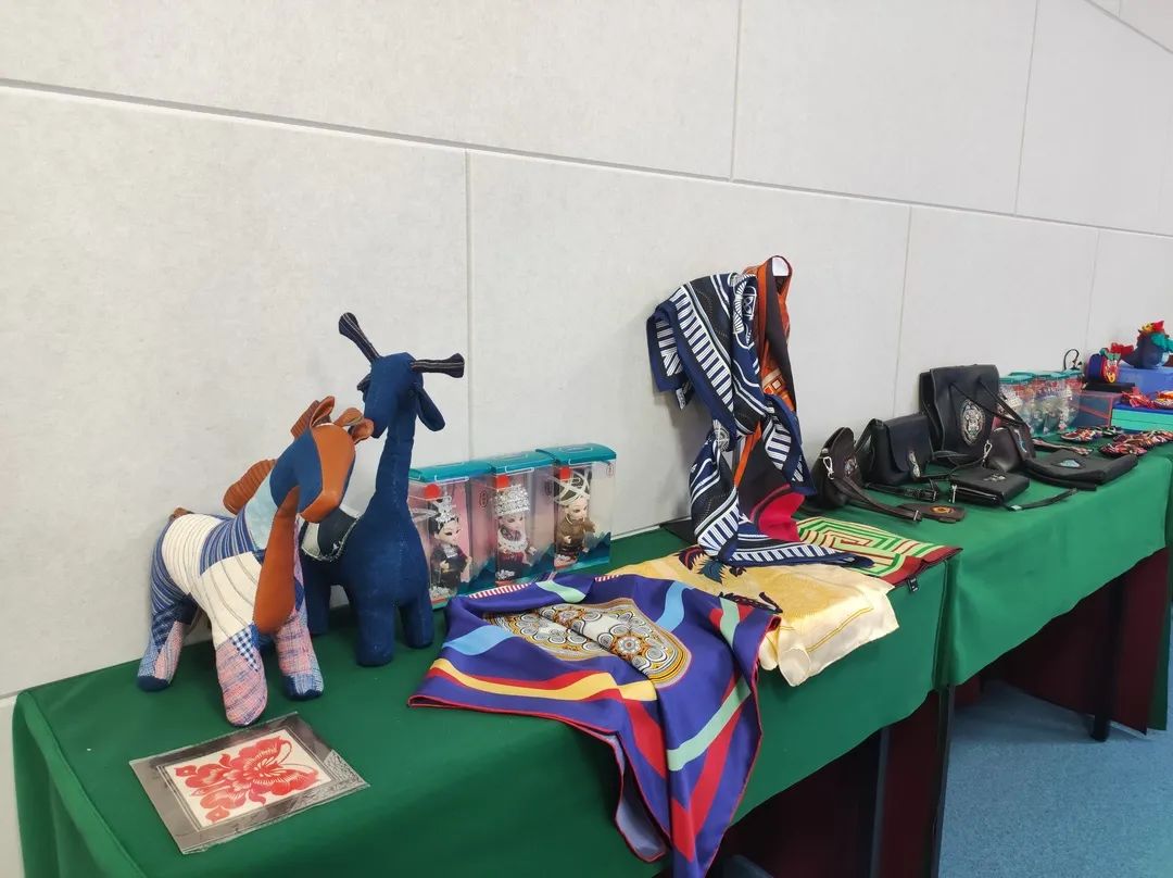 杨老师从苗族古歌开始,分析了苗族艺术史,进而从苗族刺绣的艺术和审美价值两方面作了详细的介绍,并展示了多彩的苗族刺绣蝴蝶纹、鸟纹等具体纹样图片。会场外还展示了丰富的苗族刺绣作品。