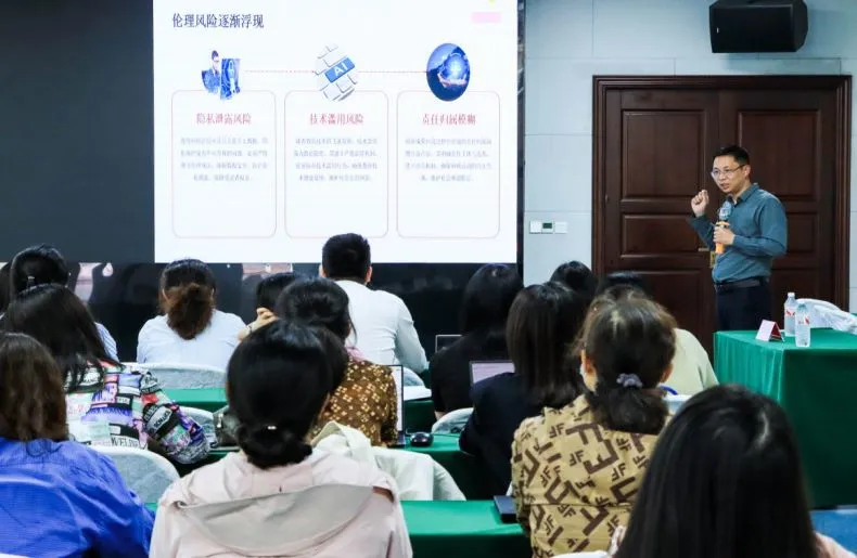 文传学院的老师们全神贯注、认真聆听。相信此次讲座让老师们对科研课题的选题与论证有了更为全面且深刻的理解。尤其是在借助人工智能工具辅助教育科研方面,老师们开拓全新视野,更新原有认知,在优化课题申报以及创新教育科研方法上,也获得极具启发性的新思路。