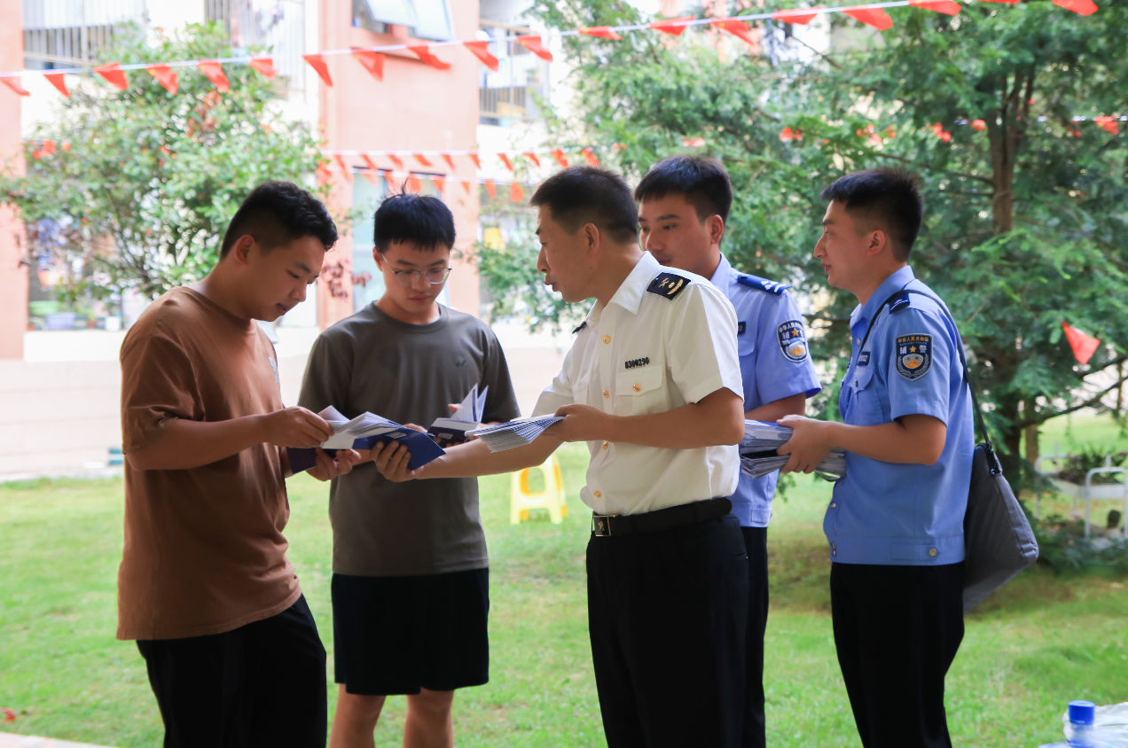 宣讲结束后,警官们并未停下普法脚步,而是走进校园、走进学生宿舍,与学子们展开“一对一”“面对面”的互动交流。警官们通过宣传册解读搭配案例强化警示,引导大家树立“主动防范、坚决抵制”的意识。同时,鼓励同学们以宿舍为单位,互相提醒、共同监督,将普法知识转化为守护自身与他人的实际行动。