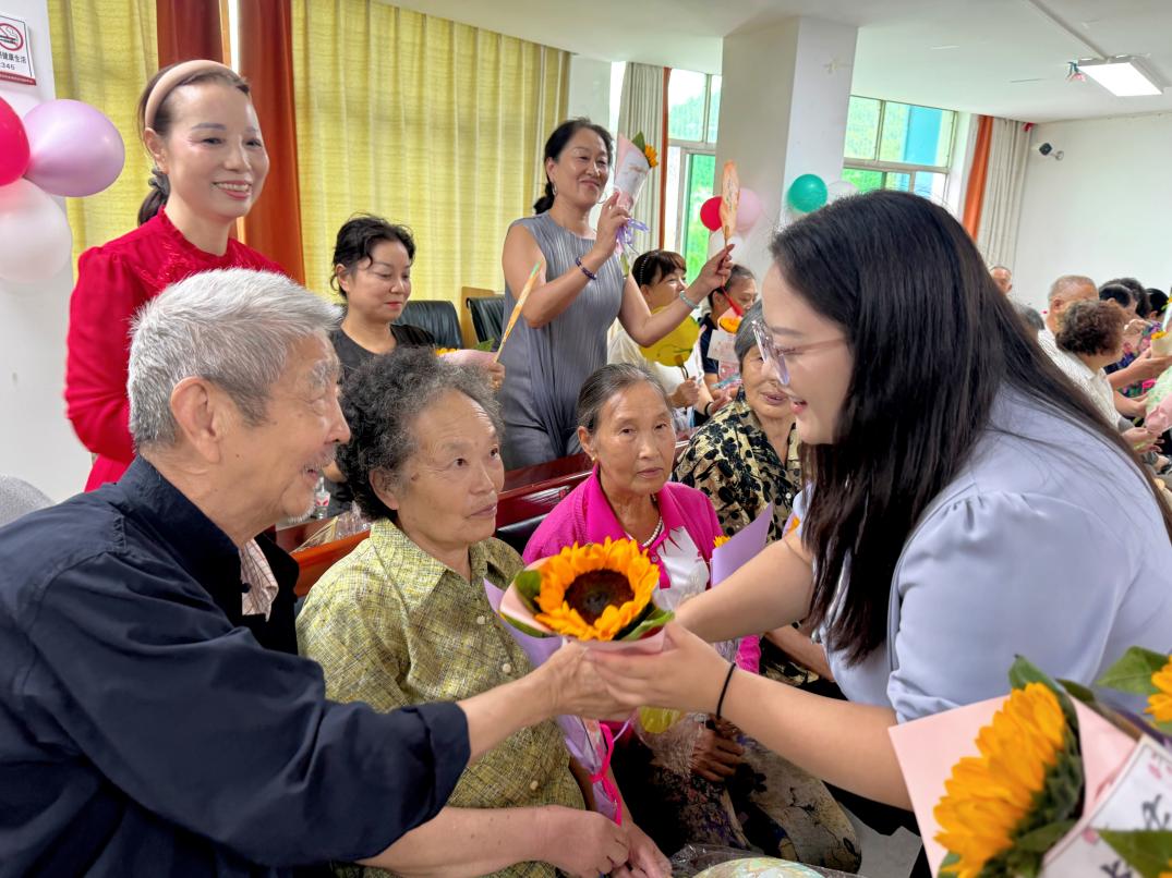 活动尾声,参与活动的学院师生以花为章,致敬芳华,为社区退休教师们送上精心准备的鲜花和真挚的祝福,并开展现场交流,聆听老一辈教育工作者的故事、学习老一辈教育工作者的优秀经验。