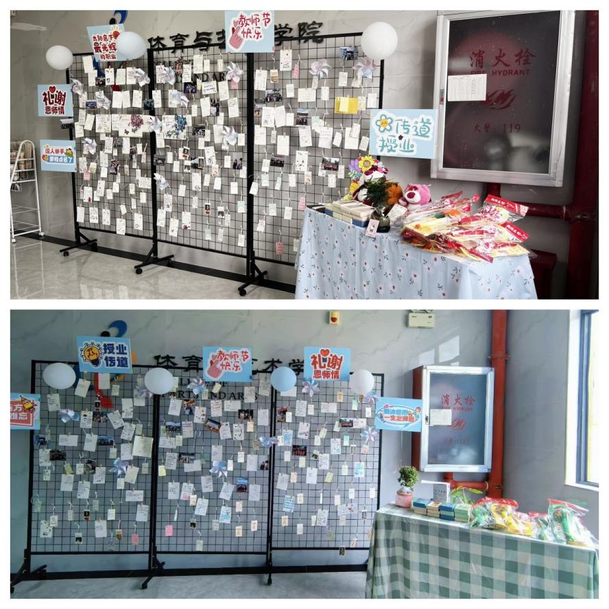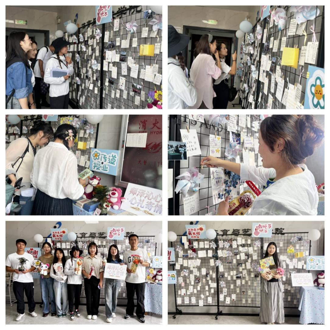 9 月 10 日教师节当天,学院学生会将感恩祝福搬进校园,在师德楼 9 楼、10 楼电梯口开展 “师泽沁心・心礼寄情”主题活动,用饱含专业特色的心意,向全院教师送上节日问候。