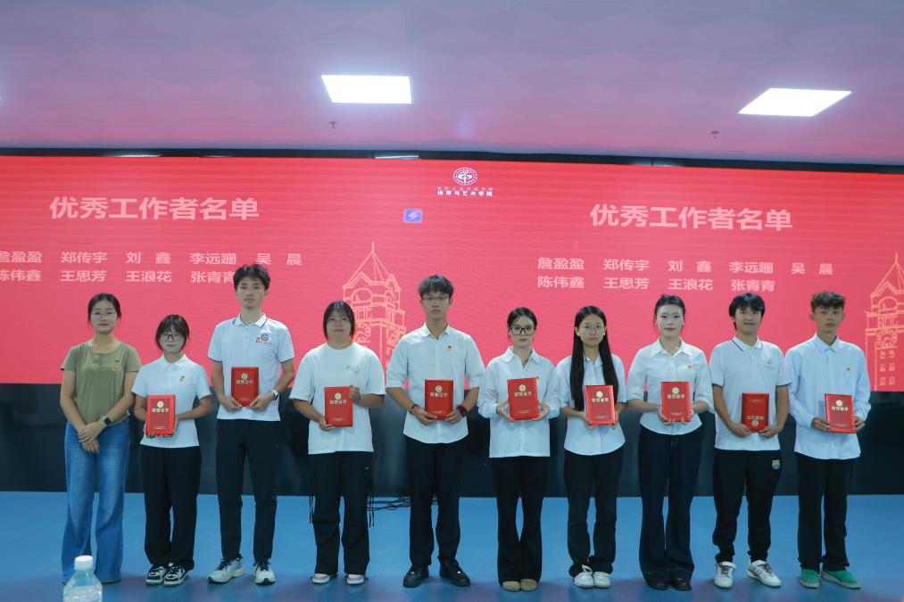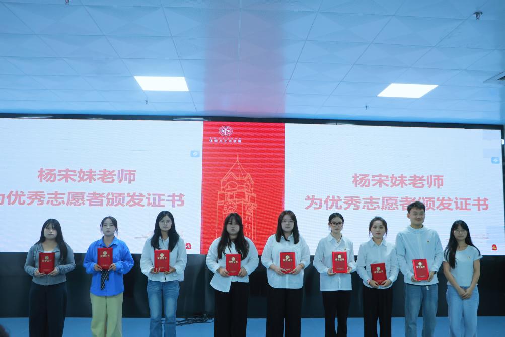 表彰环节,学院学生第二党支部书记吴宗敏首先为上一届团委、学生会“优秀工作者”颁发荣誉证书,学院学生第一党支部书记杨宋妹为“优秀志愿者”颁发荣誉证书。