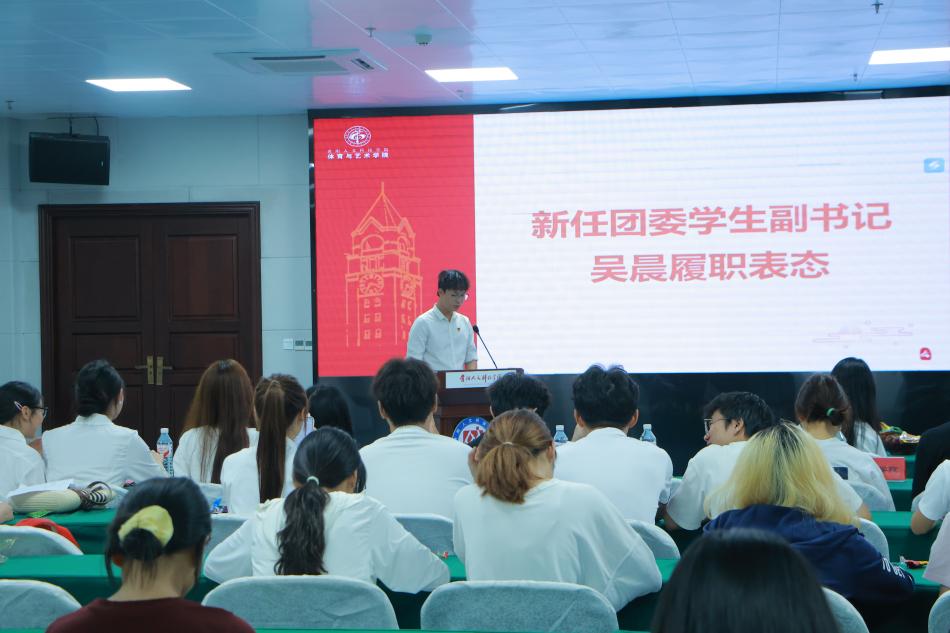 新任团委学生副书记吴晨率先代表新一届团委学生干部进行履职表态,他分享了未来工作的整体思路,明确将以 “强化思想引领、提升组织活力、优化服务质量” 为核心目标,表态将带领团委团队锐意进取、务实创新,在传承上一届优良工作作风的基础上,推动学院团委工作再上新台阶。