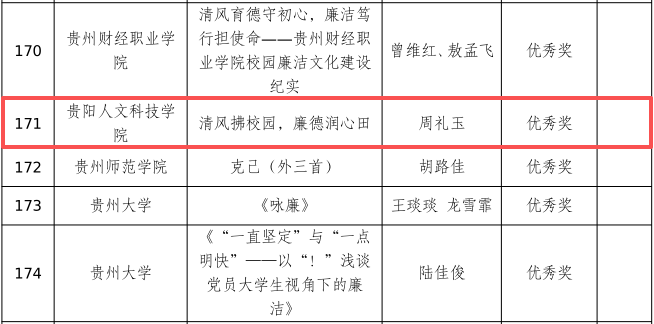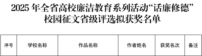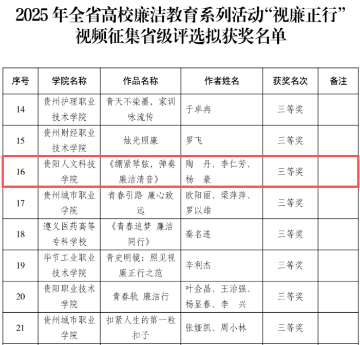 近日,贵州省教育厅公布 2025 年高校廉洁教育系列活动评审结果,新葡萄师生积极参与、精心筹备,凭借优质作品与扎实表现喜获佳绩,共斩获 4 项荣誉!充分展现了良好廉洁素养。