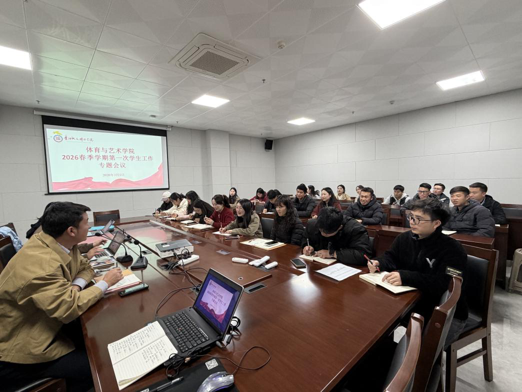 新学期伊始,为扎实推进学院学生教育管理、提升育人实效,明确新学期学生工作方向与重点,3月4日体育与艺术学院召开2026春季学期学生工作专题会议暨辅导员专题会议,学院党委书记张健、党委副书记邓程民、全体辅导员及学生班主任参会。