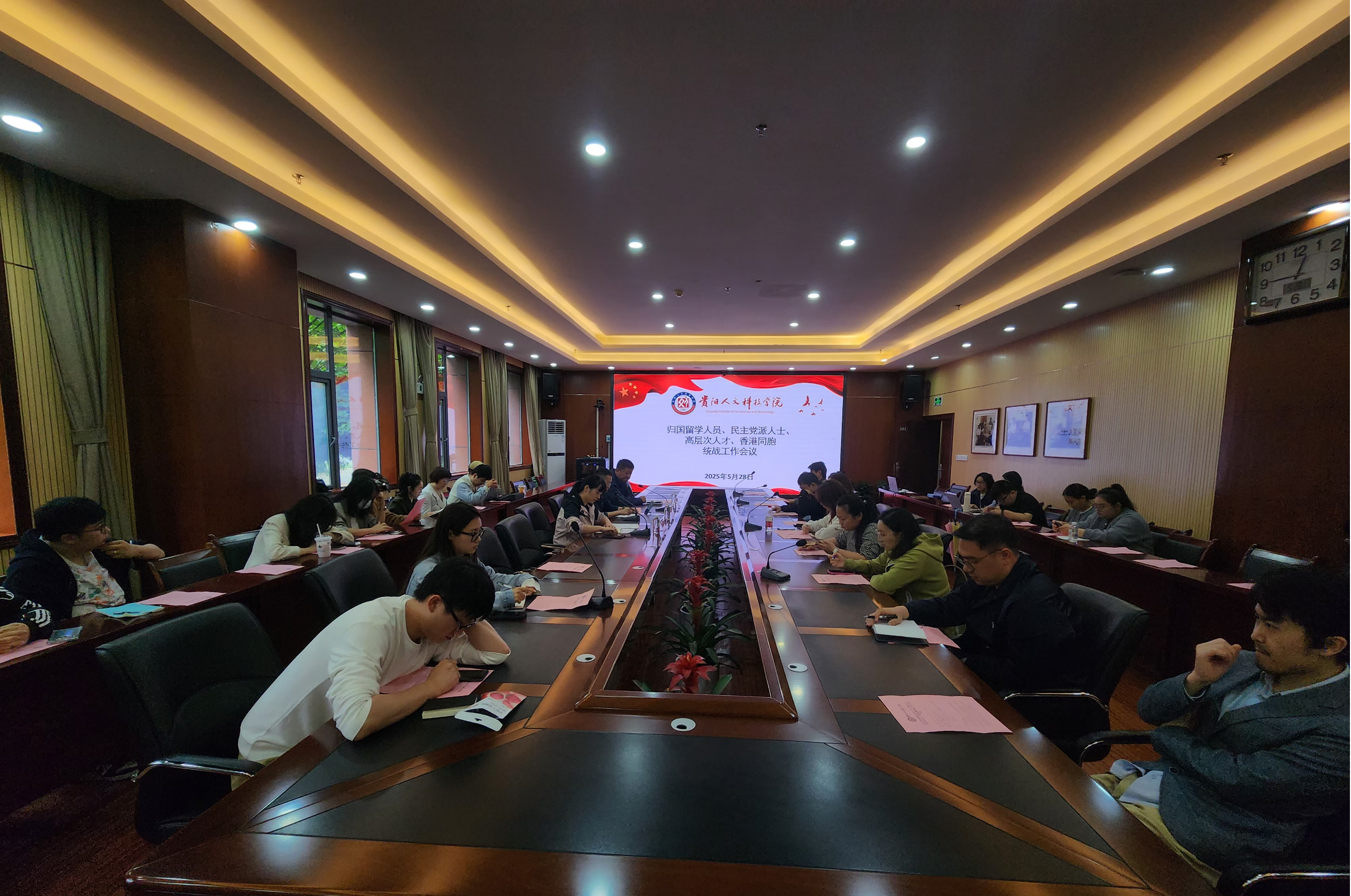 5月28日,新葡萄2025年归国留学人员、民主党派人士、高层次人才、香港同胞统战工作会议在大学城校区行政楼201会议室召开。校党委委员、统战部部长刘广超、统战部常务副部长卢春旭出席会议。各处室(馆、中心)、各学院民主党派人士、党外归国留学人员及高层次人才约40人参加会议。会议由学校统战部综合科科长邓晓霞主持会议。