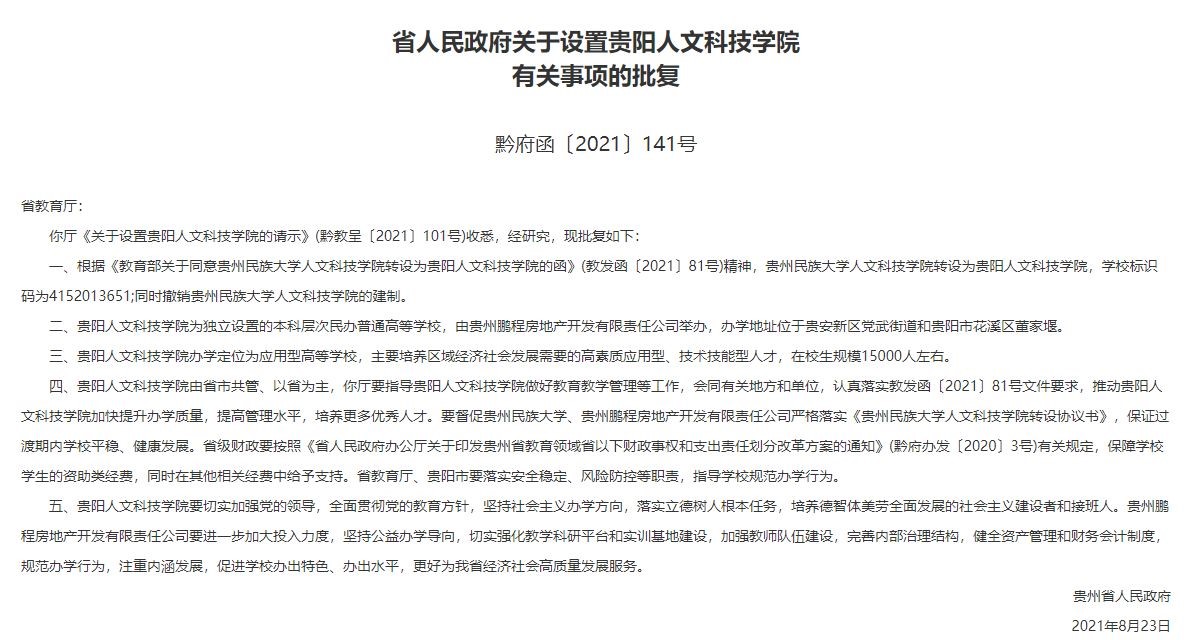 根据《省人民政府关于设置新葡萄AMG官方网站有关事项的批复》(黔府函〔2021〕141号文件),原贵州民族大学新葡萄科技学院转设为新葡萄AMG官方网站,为独立设置的本科层次民办普通高等学校,主要培养区域经济社会发展需要的高素质应用型、技术技能型人才。