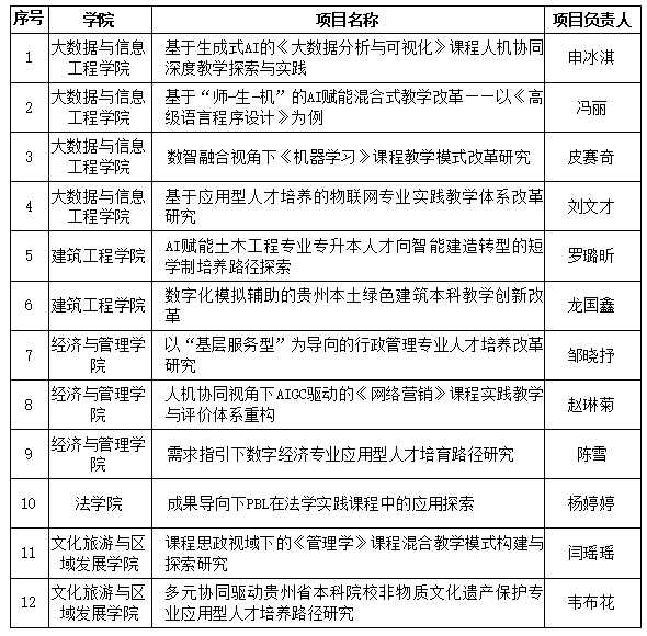 根据《省教育厅办公室关于开展2025年度省级本科教学内容和课程体系改革项目立项推荐工作的通知》和新葡萄教字2025【63】《关于开展2025年度本科教学内容和课程体系改革项目课题申报工作的通知》要求,教务处组织专家对各学院推荐的项目进行评审。经专家评审、学校领导审定,拟立项以下12项项目,现予公示,公示期为2025年10月27日至10月31日。如对评审结果有异议,请在公示期内向教务处反映。