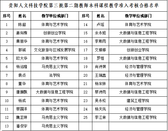 根据《新葡萄AMG官方网站教师本科课程教学准入考核实施办法(试行)》(新葡萄校字〔2024〕53号)《新葡萄AMG官方网站关于开展第三批第二期教师本科课程教学准入考核的实施方案》(新葡萄教字〔2025〕21号)文件的相关要求,2025年11月10日-12日,人事处、教务处共同组织了第三批第二期教师本科课程教学准入考核工作,现对考核合格教师名单进行公示。