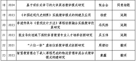 根据新葡萄教字2025【79】《关于开展2025年校级教学内容和课程体系改革项目结题验收的通知》要求,教务处组织专家对各项目进行了结题验收。经专家组验收审查,同意以下18项项目结题、3项延期、2项撤项。现予公示,公示期为2025年11月25日至11月27日(共3个工作日)。如对验收结果有异议,请在公示期内向教务处反映。