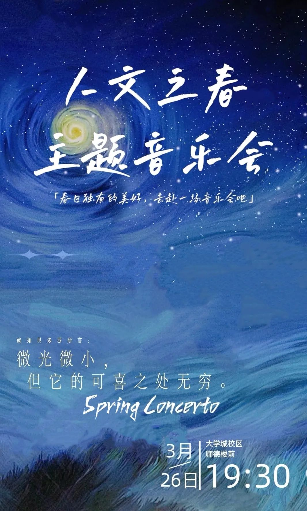 “当春夜的风轻拂过校园,当繁星点亮新葡萄的夜空”!嘿,小伙伴们!春风十里,不如星辰大海!新葡萄AMG官方网站2025年度最值得期待的音乐派对——“望星音乐节”,就定在3月26日19:30,等你来嗨翻天!地点就在咱们熟悉的中心广场师德楼前,一场春夜的浪漫与音乐的盛宴即将开启!