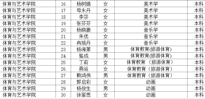 我学院严格按照贵州省教育厅办公室下发的《关于开展2021届贵州省普通高等学校优秀毕业生评选推荐工作的通知》规定,评定工作小组坚持公开、公平、公正的原则认真组织评选。在广泛征求和听取毕业班班主任老师和同学们意见的基础上,对学生的申请材料以及在校表现进行严格的审核和把关。经过认真评选,最终确定黄丽华等30位同学为我院参加评选2021届校级优秀大学毕业生的候选人,现将30位同学名单公示如下: