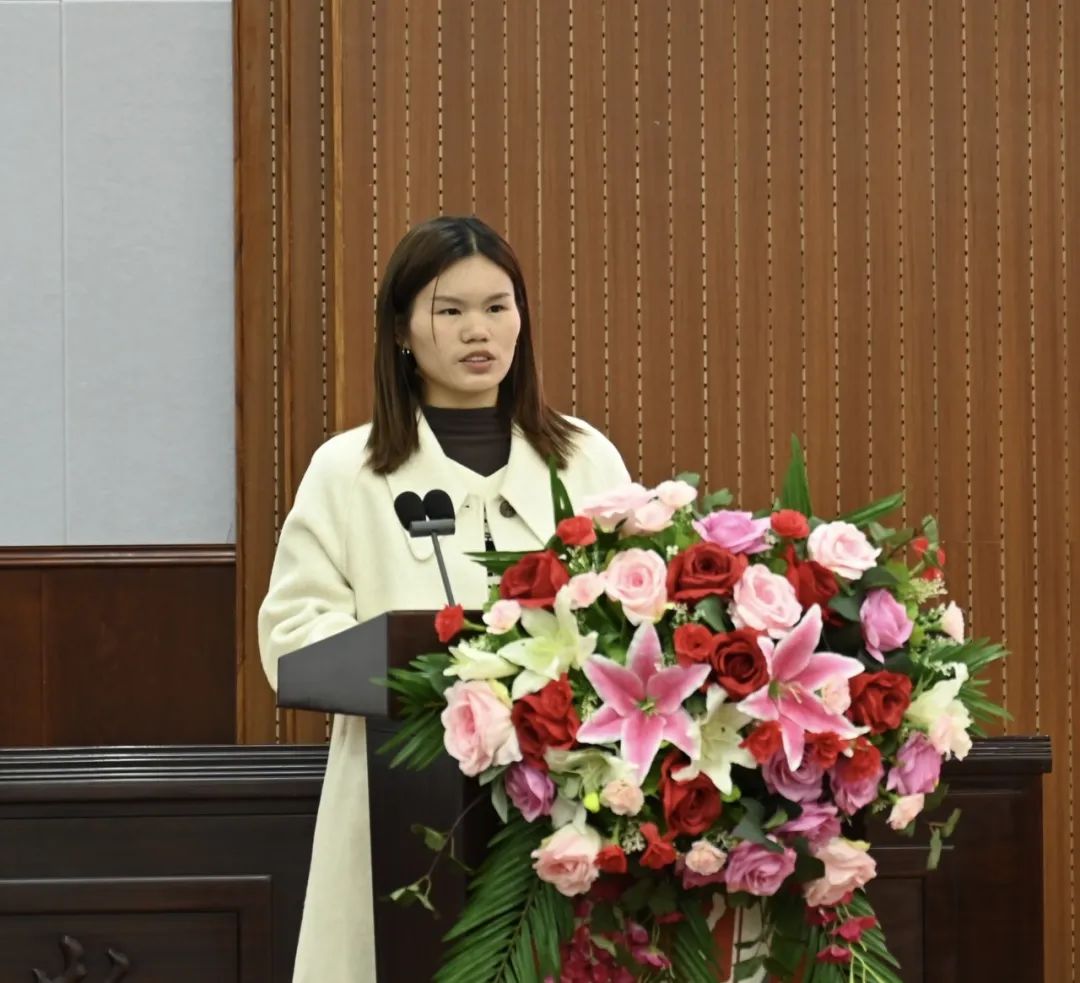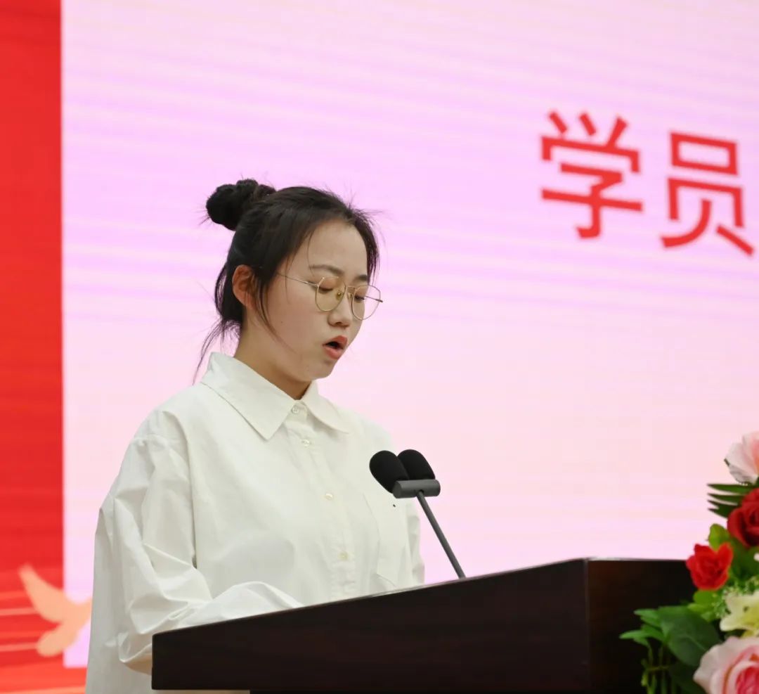 青马培训班骨干学生代表王鑫琪同学分享了自己在培训班中的成长经验与收获,简单介绍从今年3月到12月培训班将开展的活动及课程,点明培训班既关注学生思想成长,也注重实践能力的提升,并在发言中说道:“今天的中国需要更多有理想、敢担当的青年,而青马工程则是帮助我们成长为社会主义合格建设者和可靠接班人的重要阶梯。”同时,王鑫琪同学代表全体学员郑重宣誓,脚踏实地,互帮互助,坚定信念,用行动践行新时代青年的责任。