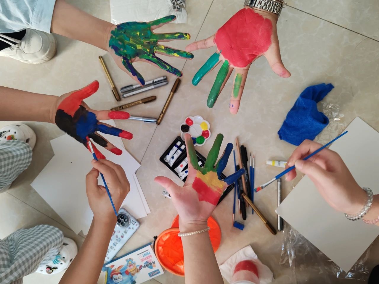 活动伊始,团支书组织同学们按小组分发了各种各样的彩色颜料,红的似火,热情奔放;蓝的如海,深邃宁静;绿的像草,生机勃勃……每一种色彩恍若代表了各式各样的人生,而每一种人生都充满无限可能。