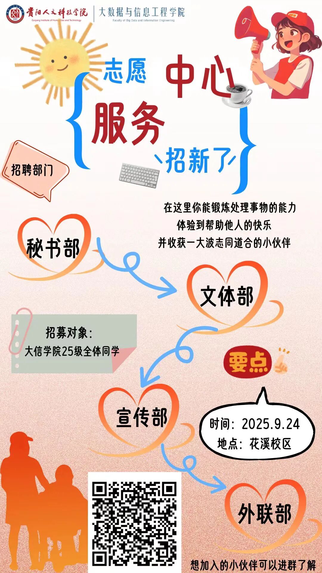 渴望在大学传递温暖、带来希望吗?期待结识志同道合的伙伴吗?大数据与信息工程学院志愿服务中心是你的最佳选择。