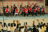 然后,是志愿者们带来的串烧舞曲《现代舞》将汇演推向高潮,志愿者们整齐划一的在台上舞动,活力四色地展现出身上的蓬勃朝气,在台上构成了一幅绚烂的画面。现场的观众们也不禁为之动容,跟着音乐舞动起来。