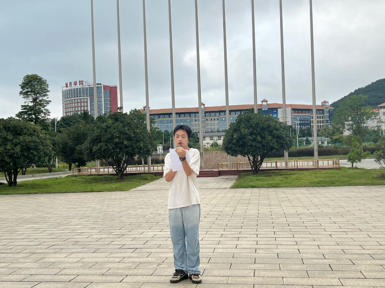 升旗仪式结束后,法学院24 级法学 3 班胡家俊同学围绕9.3阅兵进行了激情洋溢的国旗下讲话。他讲道,“这场气壮山河的阅兵盛典,让我们深刻感受到国家的强盛、民族的团结以及和平的珍贵。9.3阅兵,是对历史的庄严致敬、对英烈的深切缅怀、更是对未来的坚定宣示!”同时,他呼吁同学们把从阅兵中汲取的爱国热情和奋斗激情,转化为立足本职、建功立业的实际行动。要不忘初心、牢记使命, 以更加饱满的热情、更加昂扬的斗志、更加务实的作风,为全面建成社会主义现代化强国、实现中华民族伟大复兴的中国梦贡献自己的全部智慧和力量。胡家俊同学的激昂演讲,让在场的同学们深受启发,讲话结束后,现场掌声雷动,久久不息。
