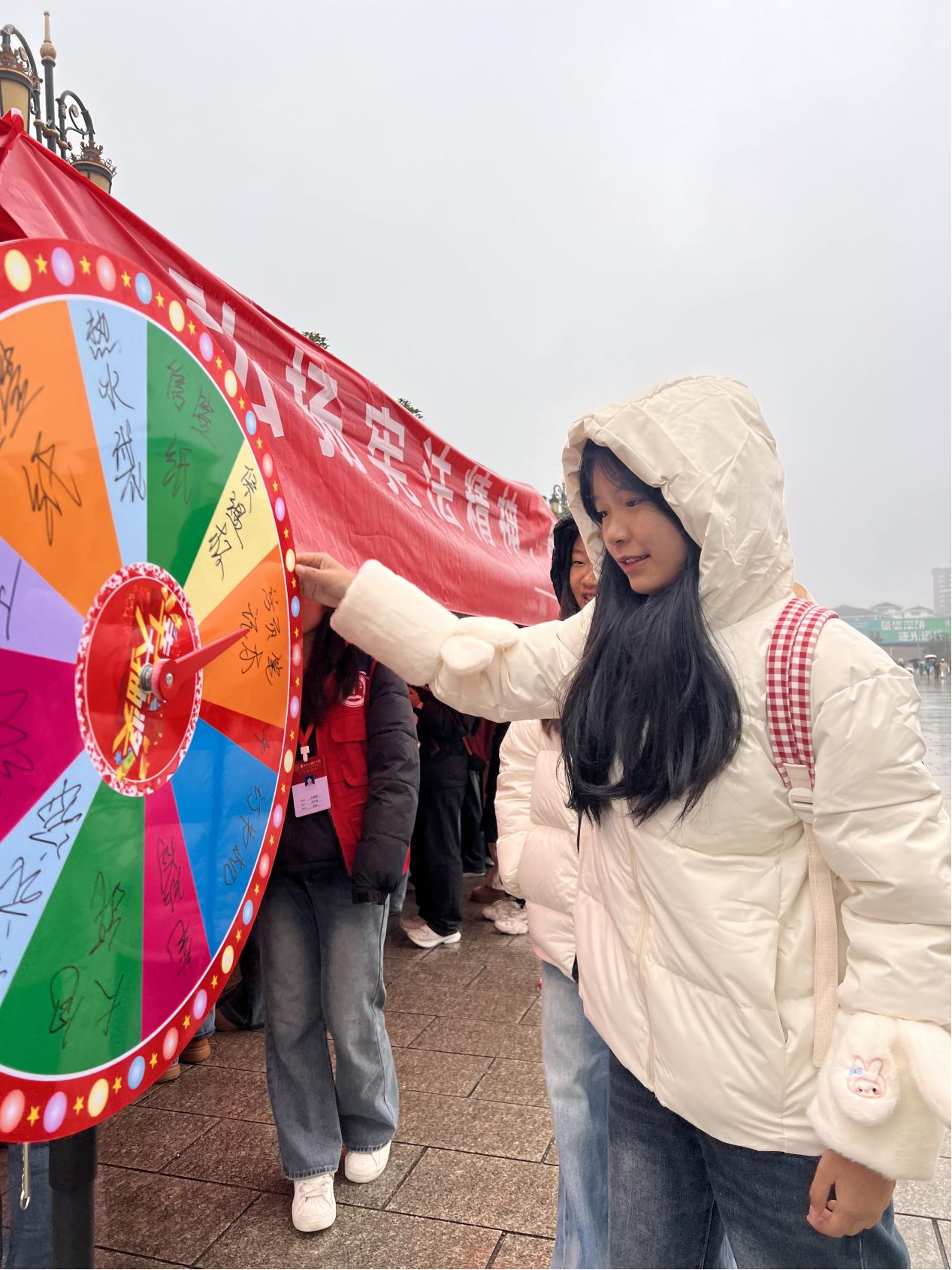 上午9时,细雨蒙蒙,大学城校区与花溪校区的工作人员们早早到位,分别在大学城校区校园广场、花溪校区1号教学楼前,为学校师生发放宪法宣传手册,并针对宪法重点法条进行解读。互动区的幸运大转盘、大富翁知识竞赛吸引了大批师生参与答题;师生们纷纷在宪法标语创作站围绕“依宪治国”“权利与义务”等主题创作标语,并张贴在公告栏进行展示。