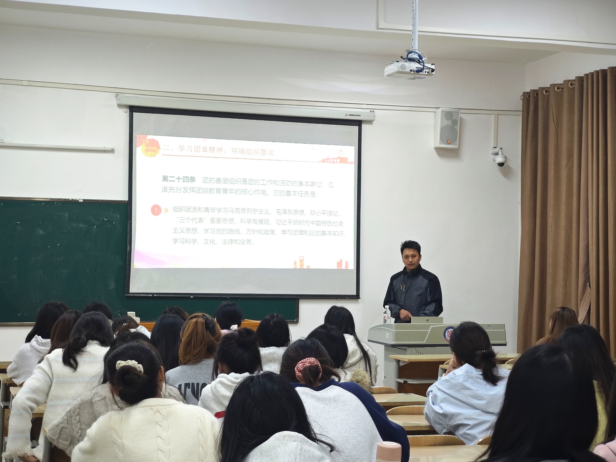 学院团委书记赵斌开展“新时代共青团员的使命与担当”主题理论授课。课程系统回顾共青团光辉历程,以重大历史事件为时间线,组织学员深入学习团章内容。