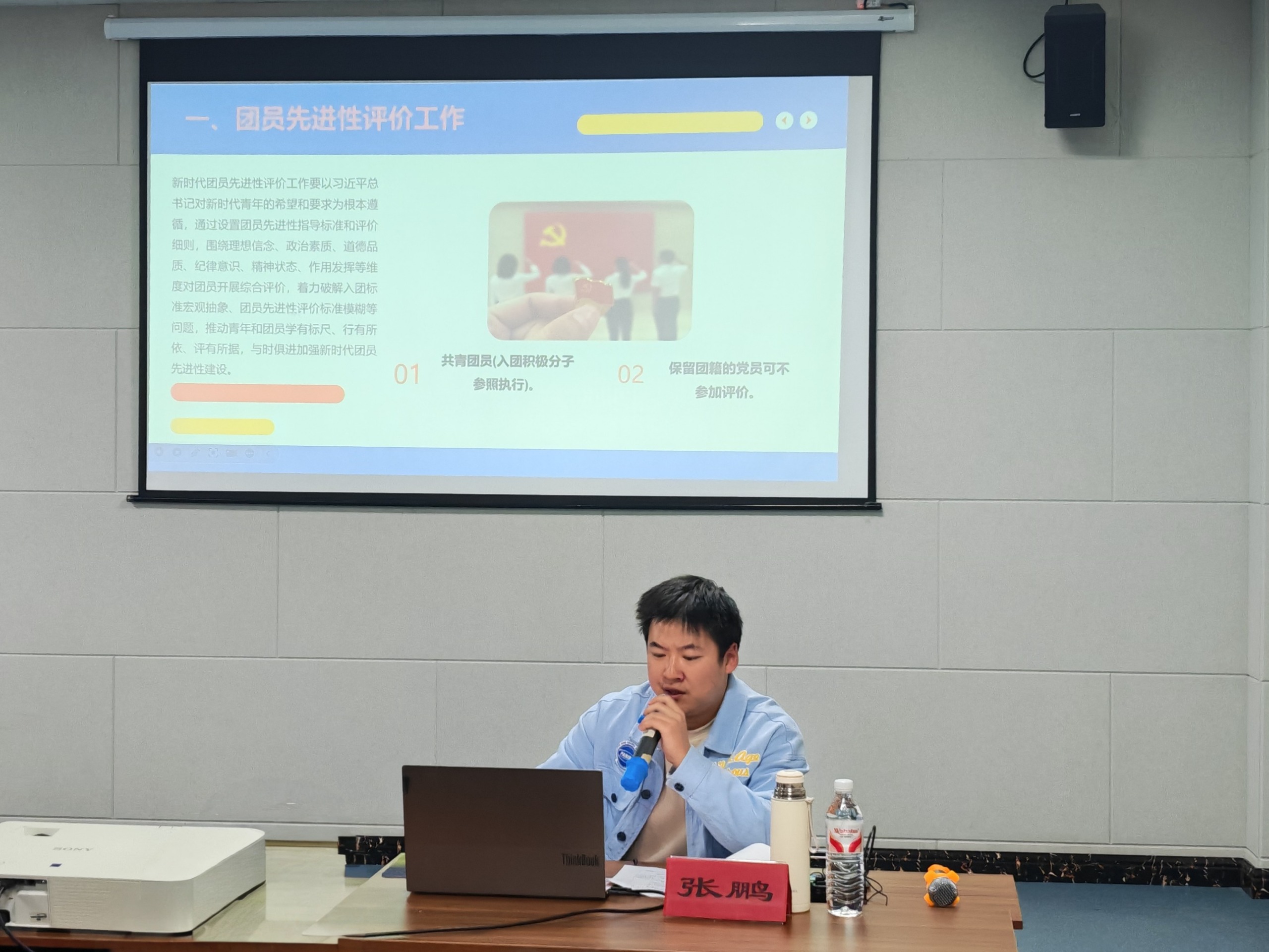学院团委老师张鹏以“争做新时代优秀的共青团员”为主题进行授课。课程由“保持和增强团员先进性”展开,系统讲解了新时代团员先进性评价标准与激励机制,明确了推优入党的具体条件与规范程序。