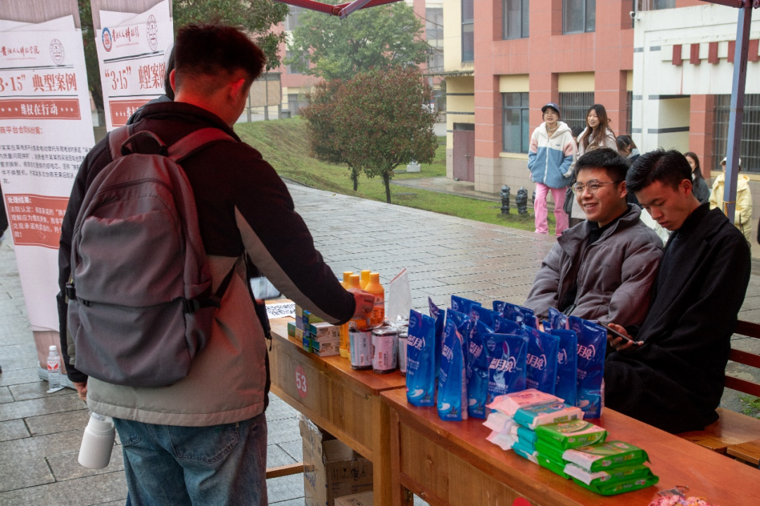 活动现场,宣传册成为了“抢手货”。手册以生动的案例漫画、清晰的维权流程图解等形式,深入解析了网购陷阱、霸王条款、举证难点等热点问题,并附上了“12315一键维权”操作指南。法学院志愿者结合手册内容,耐心细致地为在场师生解答咨询。“同学,如果遇到直播带货虚假宣传,一定要记得保留交易记录和沟通截图哦。”不少师生驻足聆听,纷纷表示学到了很多实用技巧,对消费者权益保护有了更深入的了解。