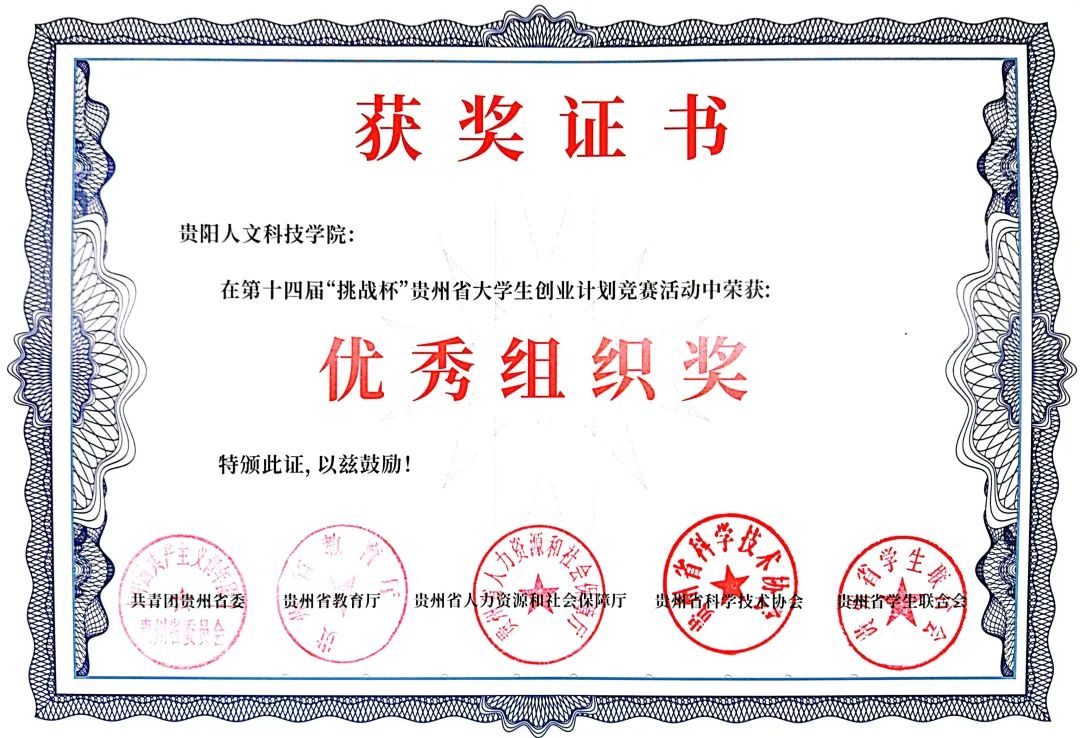 新葡萄在第十四届“挑战杯”贵州省大学生创业计划竞赛活动中荣获优秀组织奖!
