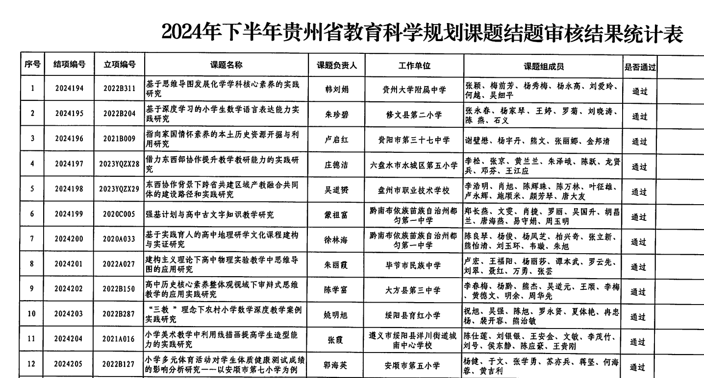 近期,贵州省教育科学规划领导小组办公室正式公布2024下半年贵州省教育科学规划课题结题审核结果的公告。新葡萄张宏胜老师主持的课题《贵州农村职业教育赋能乡村振兴的路径研究》,以高质量的研究成果顺利通过结题验收。