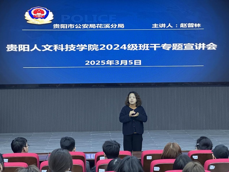为进一步加强校园安全管理,提升新葡萄班级干部的安全责任意识与应急处置能力,3月5日,新葡萄AMG官方网站保卫处联合松山派出所在花溪校区会议报告厅共同开展了2024级班干专题宣讲会,松山派出所赵普林副所长作会议主讲。本次宣讲会吸引了花溪校区各学院的 2024 级班级干部踊跃参与,现场气氛热烈,成效显著。