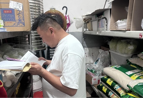 后勤处副处长检查食堂商户晨检和台账