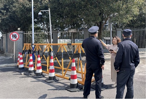 保卫处副处长沈以秋和城管沟通西门处流动摊贩问题