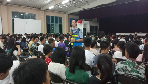 2019 年9月7日(周六)晚上7点到9点,贵州民族大学新葡萄科技学院大数据与信息工程学院安全知识教育演讲活动于花溪校区二号教学楼二楼展厅举行。花溪派出所的赵警官莅临为2019级全体新生做安全知识演讲。